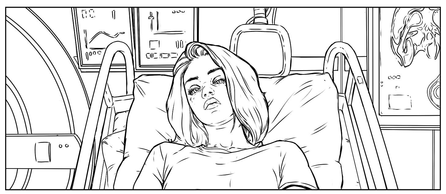 I don’t draw super detailed pencils, just page layouts really (script > layouts > inks) so my inks are quite ‘free’ in the first-pass. That leads to serendipitous tweaks - changing panels and layouts on the fly if I spot better pacing, emotion or composition. It also means occasional HUGE deviations from the script! My second- pass reconciles these changes - keeping the best happy accidents but ensuring everything is joined up, making sense and completes the first major quality checklist - every page, every panel - including: